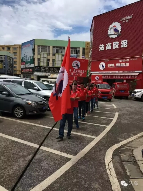 6月20日一大早,4輛法高服務(wù)車,20多個人的團(tuán)隊,法高昆明銷售部攜手共筑一支名為法高的戰(zhàn)隊出發(fā)各大建材市場。