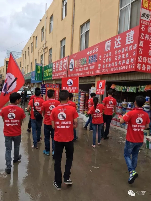 這是個雨水的季節(jié),細(xì)雨夾著泥土的芬芳飄然而至,建材城又多了份靜謐,然而法高戰(zhàn)隊不畏艱難,勇往直前,堅定嘹亮的歌聲:“怕掉磚,用法高膠泥!怕漏水,用法高彩色防水!賣法高,拿iPhone6s!”瞬間讓建材城熠熠生輝!法高人好樣的!讓暴風(fēng)雨來得更猛烈些吧!